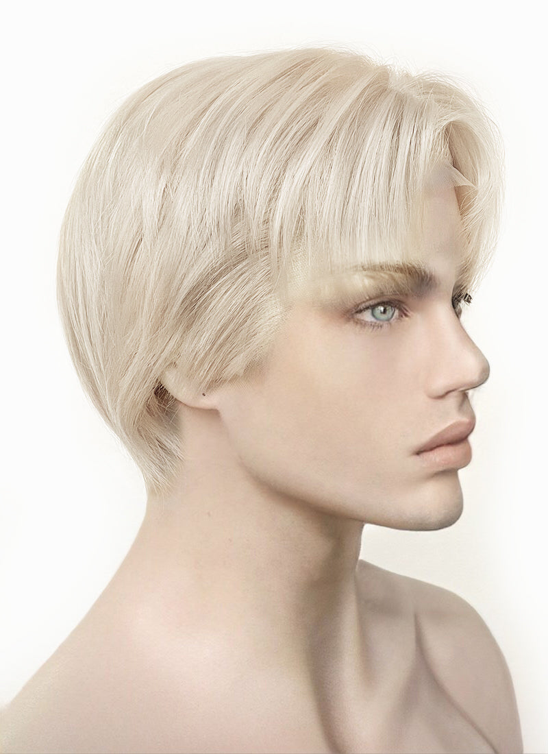 Light Ash Blonde Straight Lace Front Synthetic Men's Wig LF6020 -