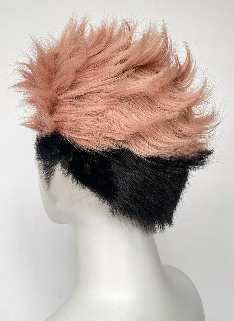 Jujutsu Kaisen Sukuna/Yuji Itadori Peach Pink Black Ombre Wavy Lace Front Synthetic Men's Wig LF6130 -