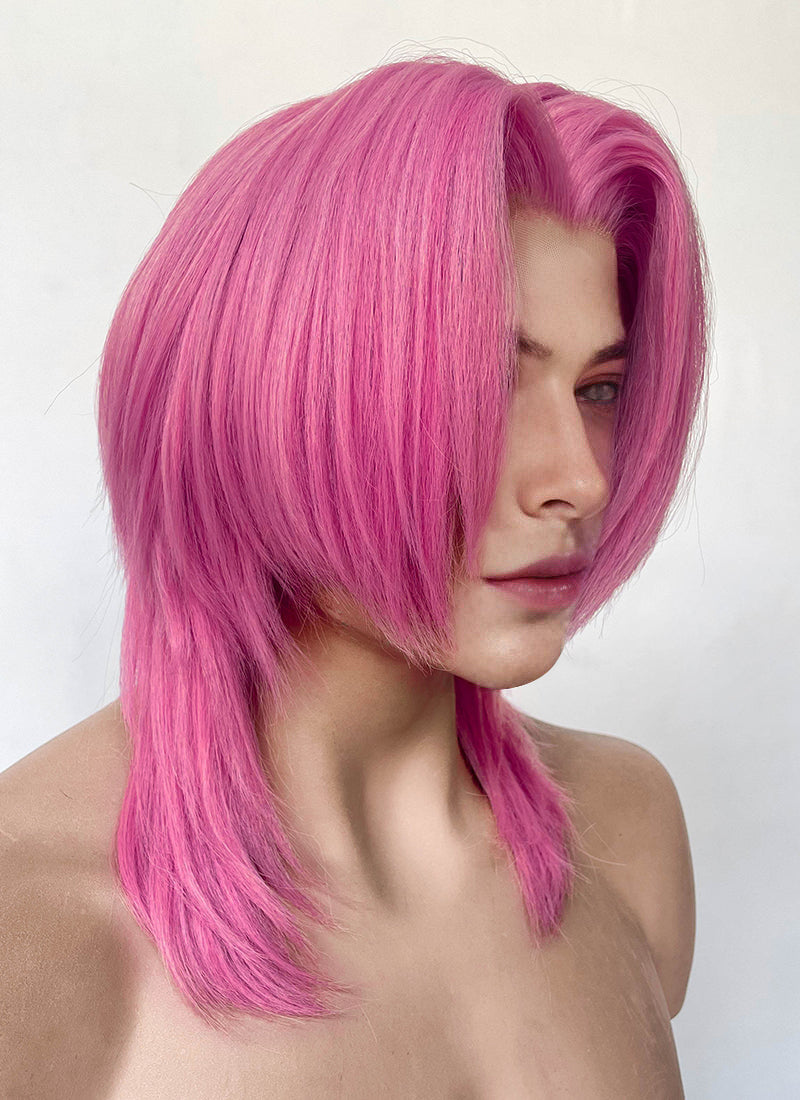 Pink Straight Lace Front Synthetic Men's Wig LF6059