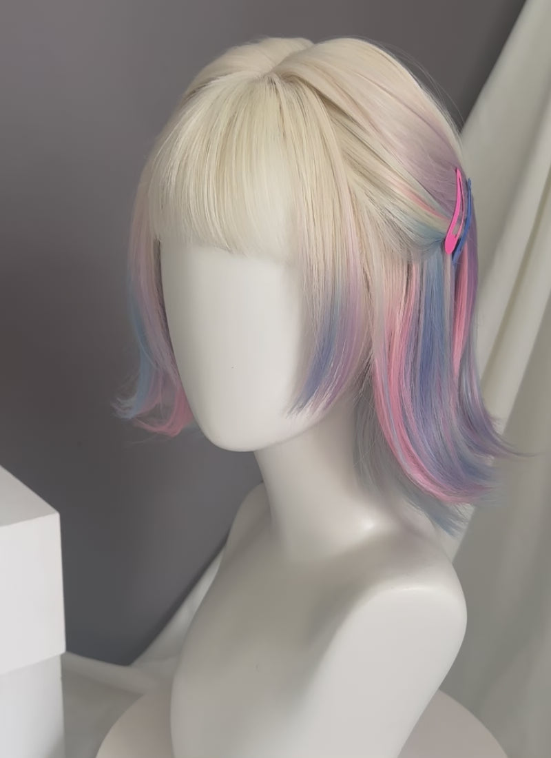 Wednesday Enid Sinclair Blonde Pink Blue Ombre Synthetic Wig TB1768A